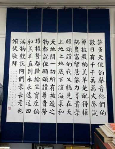 “Worthy is the Lamb who was slain, to receive power and wealth and wisdom and might and honor and glory and blessing!” And I heard every creature in heaven and on earth and under the earth and in the sea, and all that is in them, saying, “To him who sits on the throne and to the Lamb be blessing and honor and glory and might forever and ever!” And the four living creatures said, “Amen!” and the elders fell down and worshiped.