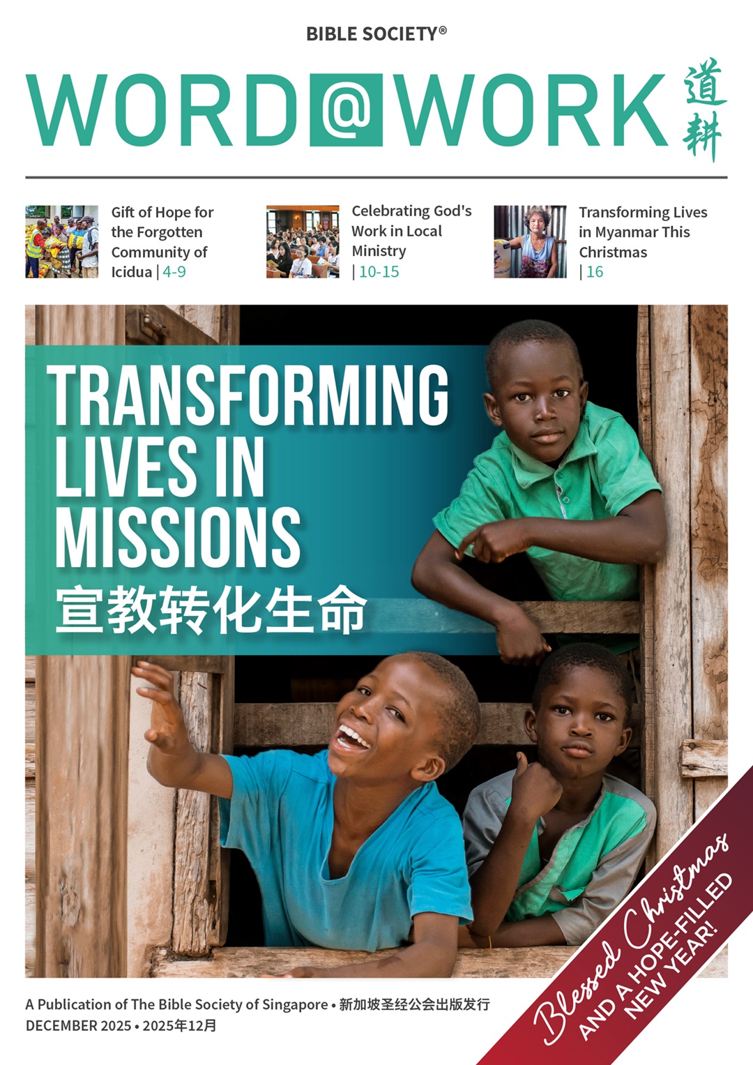 Word@Work is a semi-annual newsletter published by the Bible Society (BSS). Discover more about what BSS is doing locally and around the world, and see how it partners with different organisations to bring the Word of God to the people. Interact with BSS through engaging jokes, comics and games, and stand to win attractive prizes!